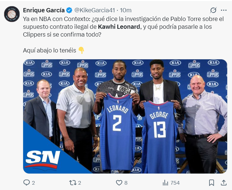 就连欧洲媒体Enrique Garcia也关注了这个事件,他们表示要看看NBA联盟对鲍尔默、伦纳德、快船调查时查到了些什么,如果一切都证实是真的,快船会发生什么呢?